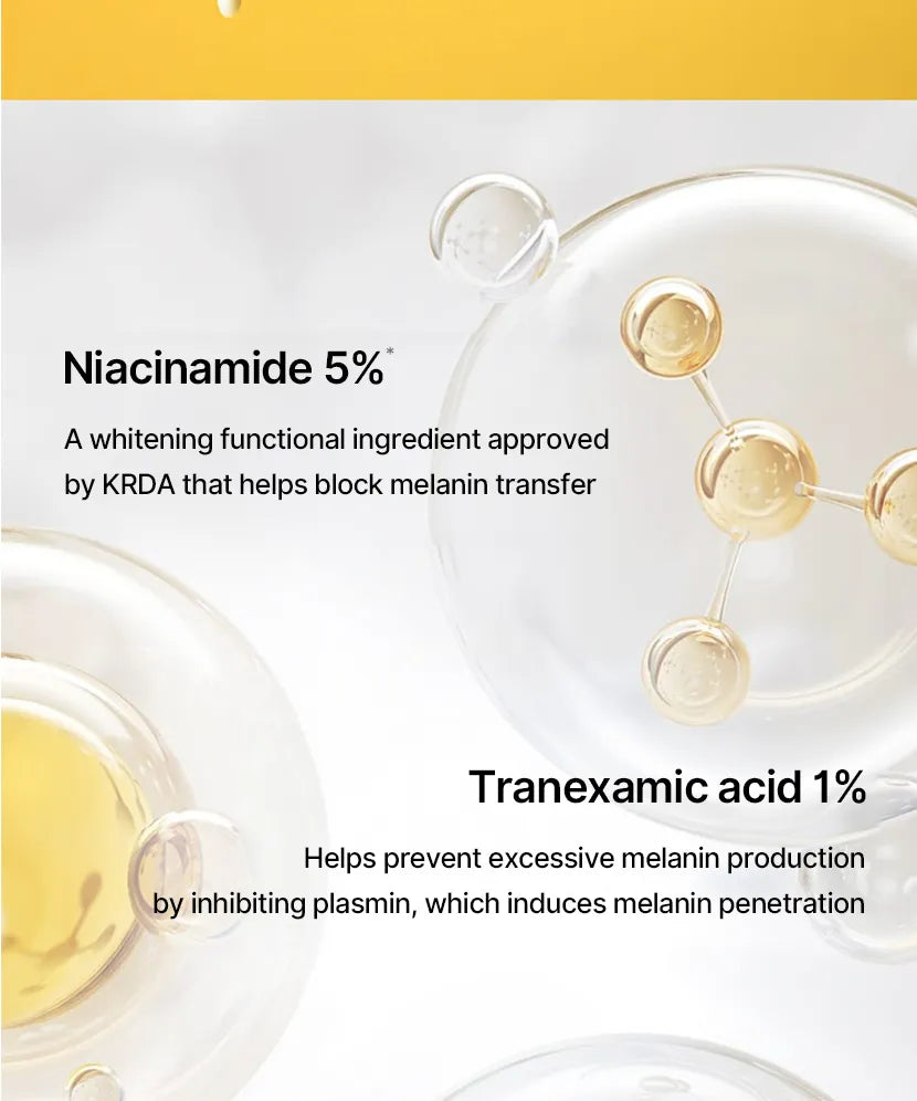 - Formulated with Tranexamic Acid, Niacinamide and Panthenol that help prevent production of excessive melanin to prevent the appearance of dark spots.