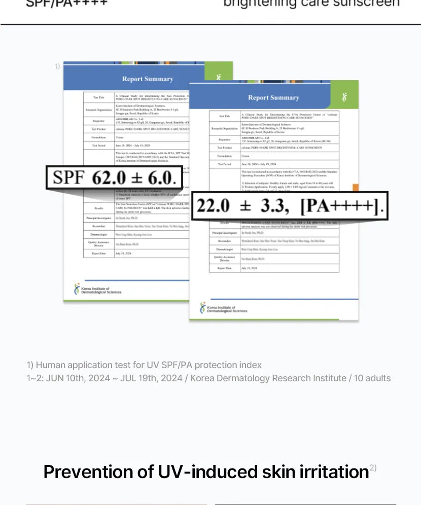- A chemical sunscreen with a broad spectrum SPF50+ PA++++ that protects the skin from UV rays and helps reduce the appearance of dark spots and blemishes.