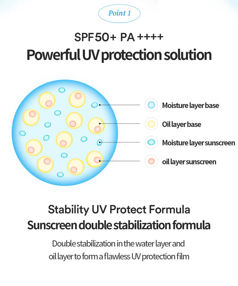 🌟 SPF 50+ PA++++ | Reliable and stable UV A/B protection with silky and soft texture