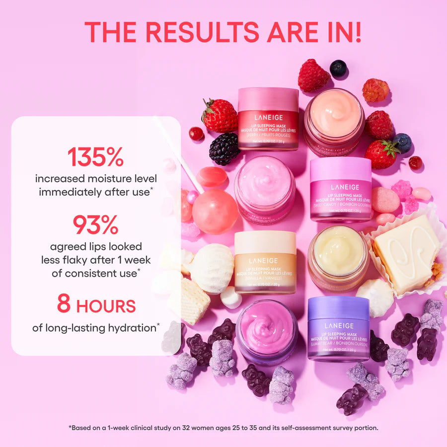A kit that features the beloved Lip Sleeping Mask in four juicy scents: Berry, Sweet Candy, Mango, and Peach Iced Tea.
